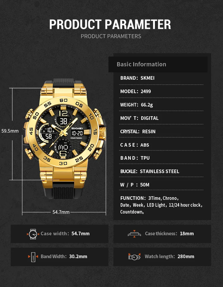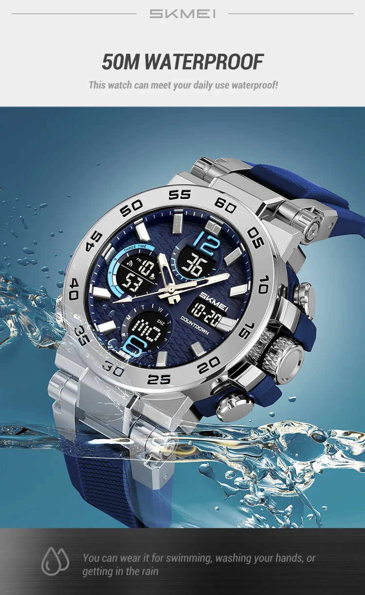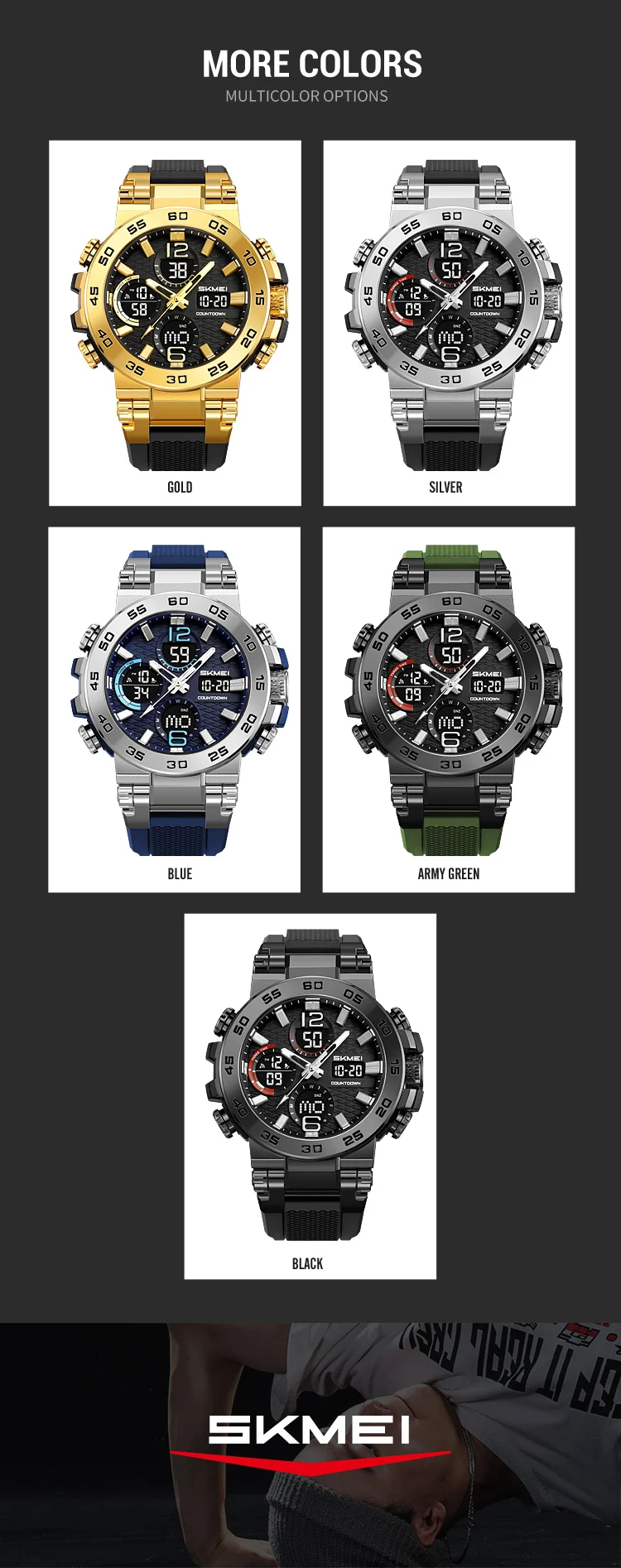 SKMEI Fashion Sport Double Display Digital Electronic Watch LED Light Quartz Watches For Men Waterproof Alarm Clock Wristwatches